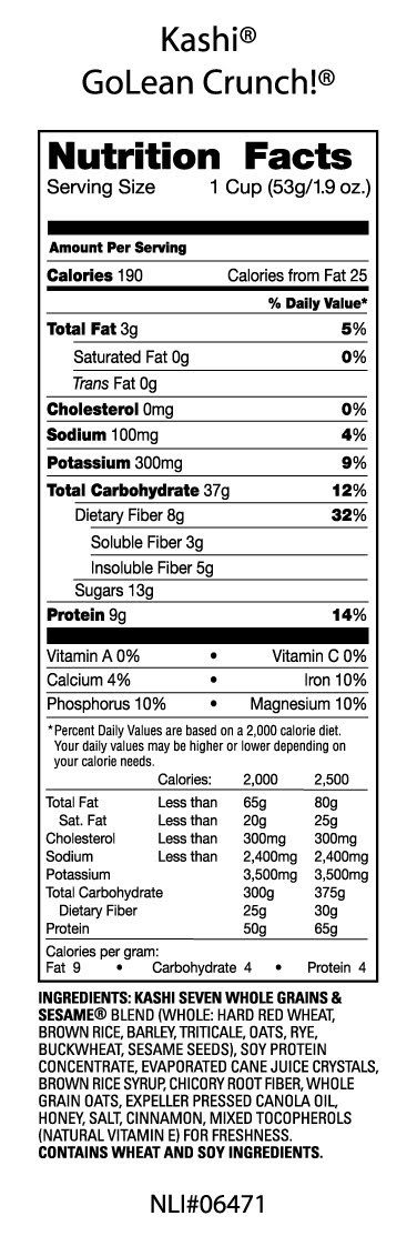 - Kashi GoLean Crunch - Serving: 1 Cup - Sugar: 13g